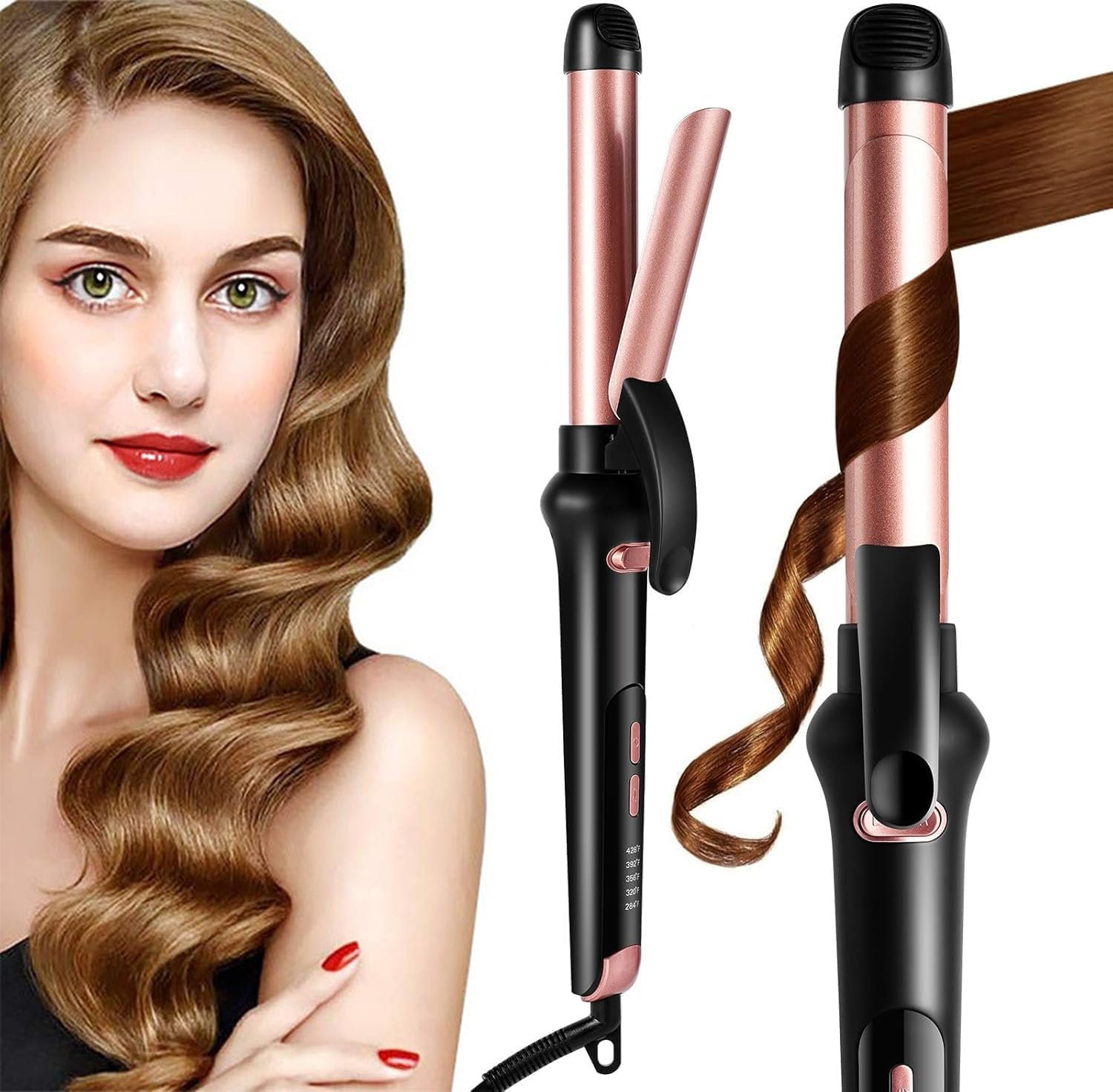 The rotating curling wand with LED digital display offers 5 heat settings ranging (284°F, 320°F, 356°F, 392°F, 428°F) to match your hair type and desired curl tightness.